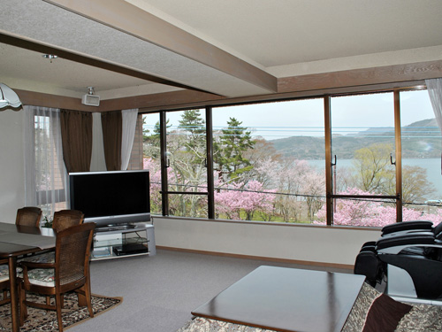 ゆとりのリビングルームに湖を眺めながらのお風呂、至福のリゾートライフが楽しめます。 - 窓から望む四季折々山中湖、そして、快適なリゾートライフを過ごしていただくための、ちょっと贅沢ともいえる数々の設備を揃えました。